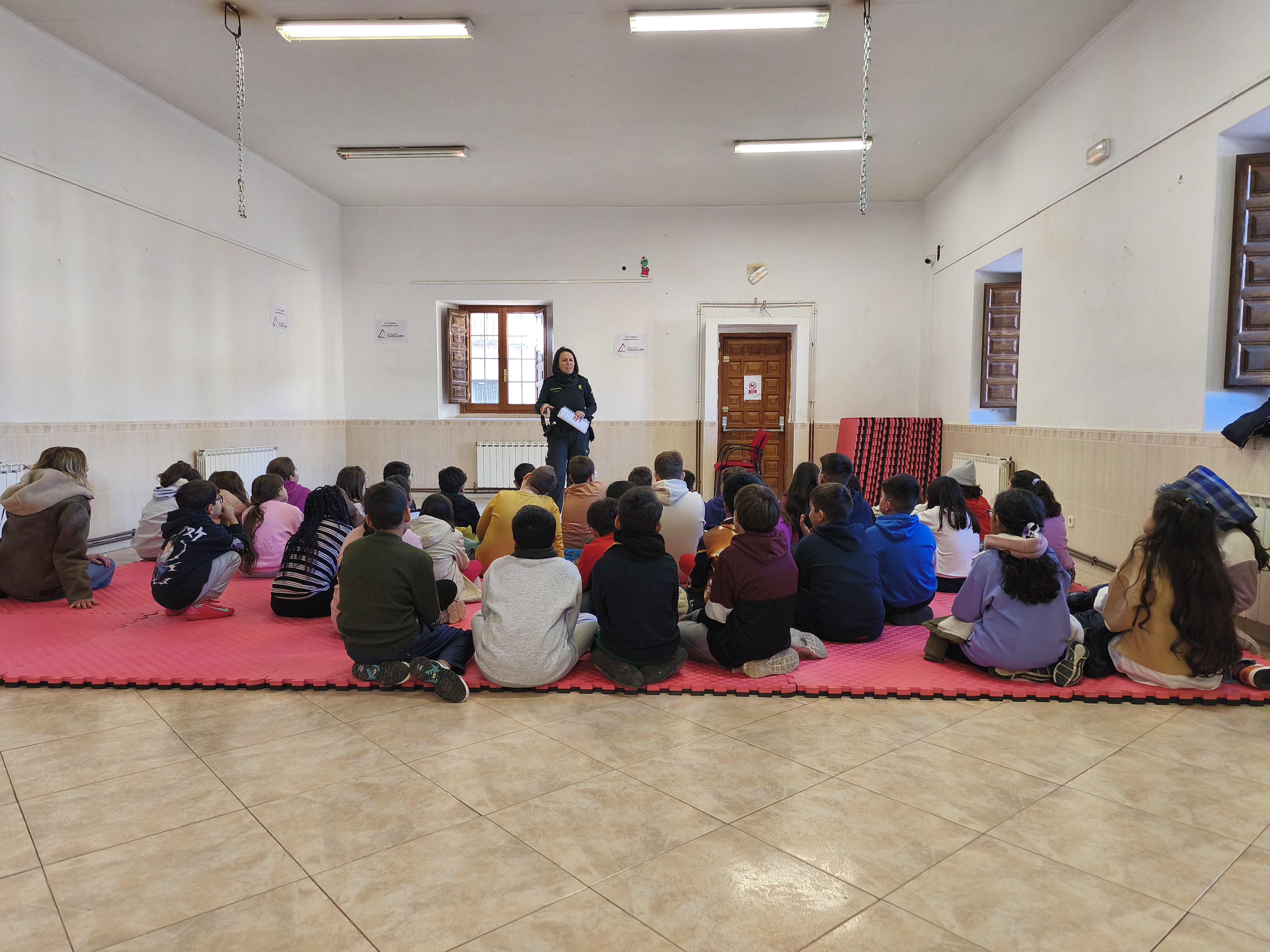 Además, los alumnos de 3º a 6º asistieron a una charla impartida por la Guardia Civil, organizada en colaboración con el Ayuntamiento de Trijueque.